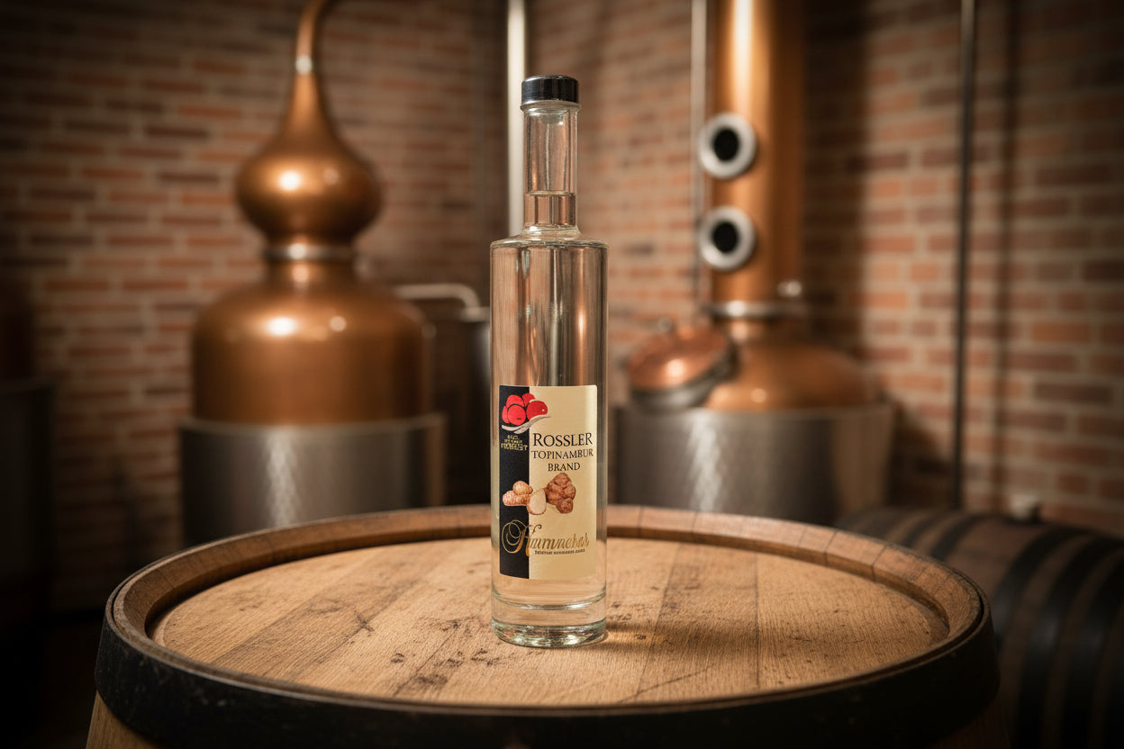 Eine außergewöhnliche Spezialität aus der Schwarzwälder Brennkunst. Die Topinamburknollen, auch Erdbirne genannt, wachsen auf den Feldern rund um Renchen-Ulm und bringen eine ganz eigene Aromatik in die hofeigene Brennerei. Klemens Kammerer verbindet mit diesem Brand traditionelles Handwerk mit Experimentierfreude. Nach sorgfältiger Verarbeitung und schonender Destillation entsteht ein kristallklarer Edelbrand mit unverwechselbarem Charakter. Die nussigen, leicht erdigen Noten der Topinambur vereinen sich mit feinen Karamelltönen zu einem harmonischen Geschmackserlebnis. Im Gaumen zeigt der Topinamburbrand eine besondere Tiefe und Komplexität, die ihn von klassischen Fruchtbränden deutlich abhebt. Ein echter Geheimtipp für Kenner, die Mut zur Besonderheit schätzen und die Vielfalt der Schwarzwälder Brennkunst erleben möchten.